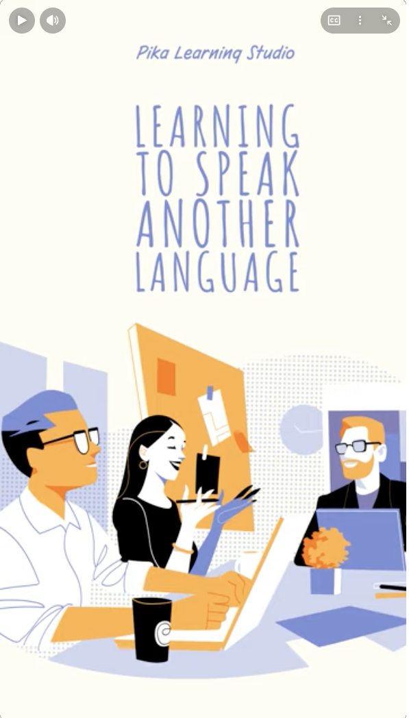 Learning to speak another language may seem like an overwhelming chore, so this video features cartoon characters and moving graphics, since that seemed like a nice way to appeal to any age and background.