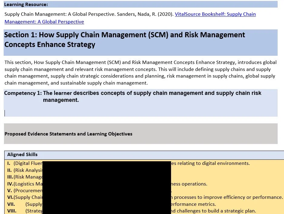 The course projects are best viewed on the university learning management systems, but I have added some screen shots here to show a couple of versions of course maps and pages from the LMS.